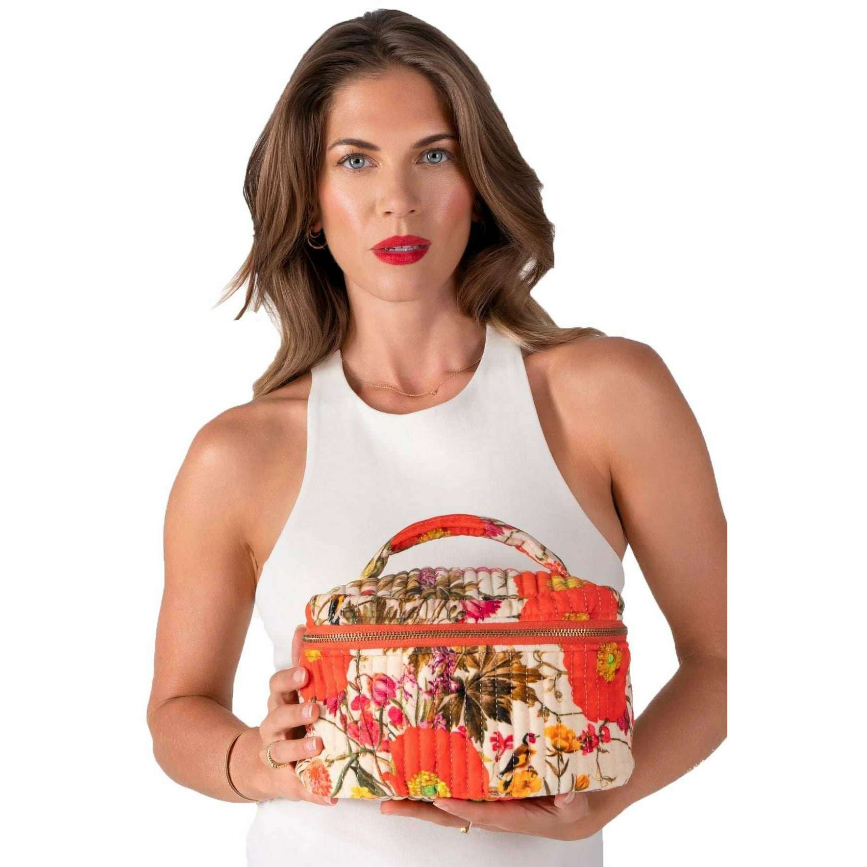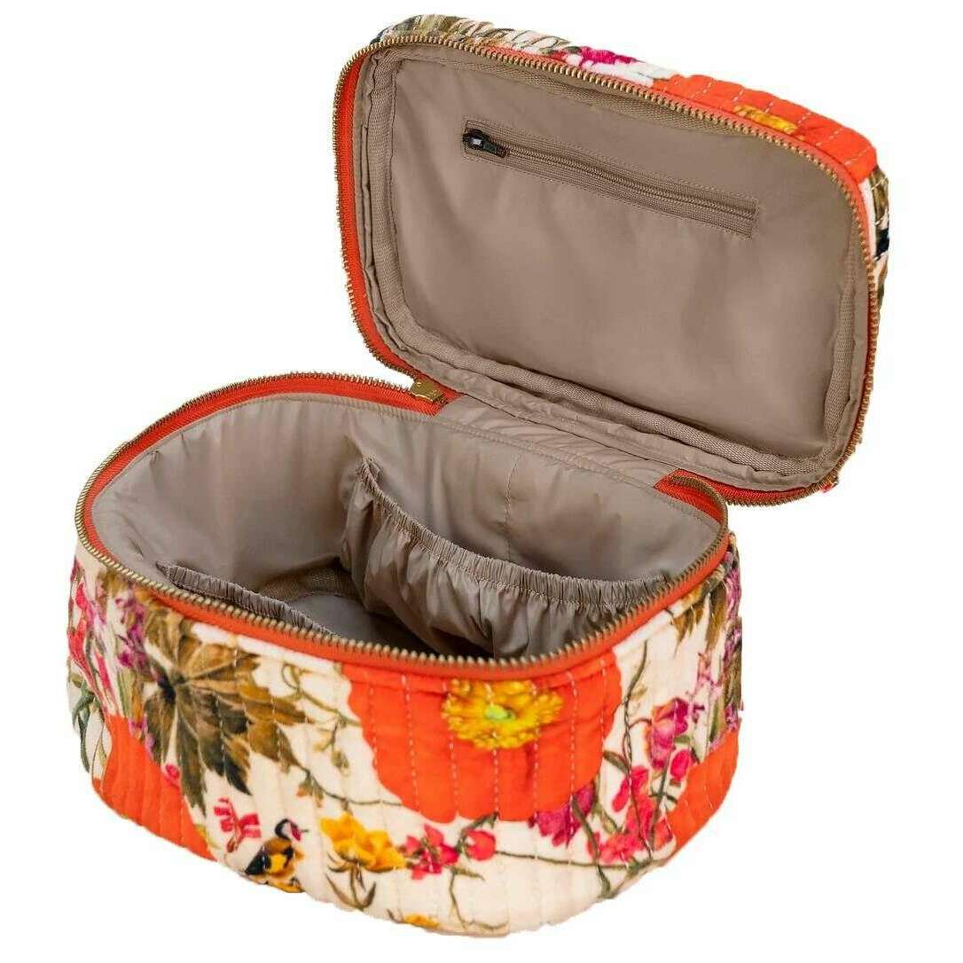 Powder Fine Flowers Quilted Vanity Case - White/Red/Brown