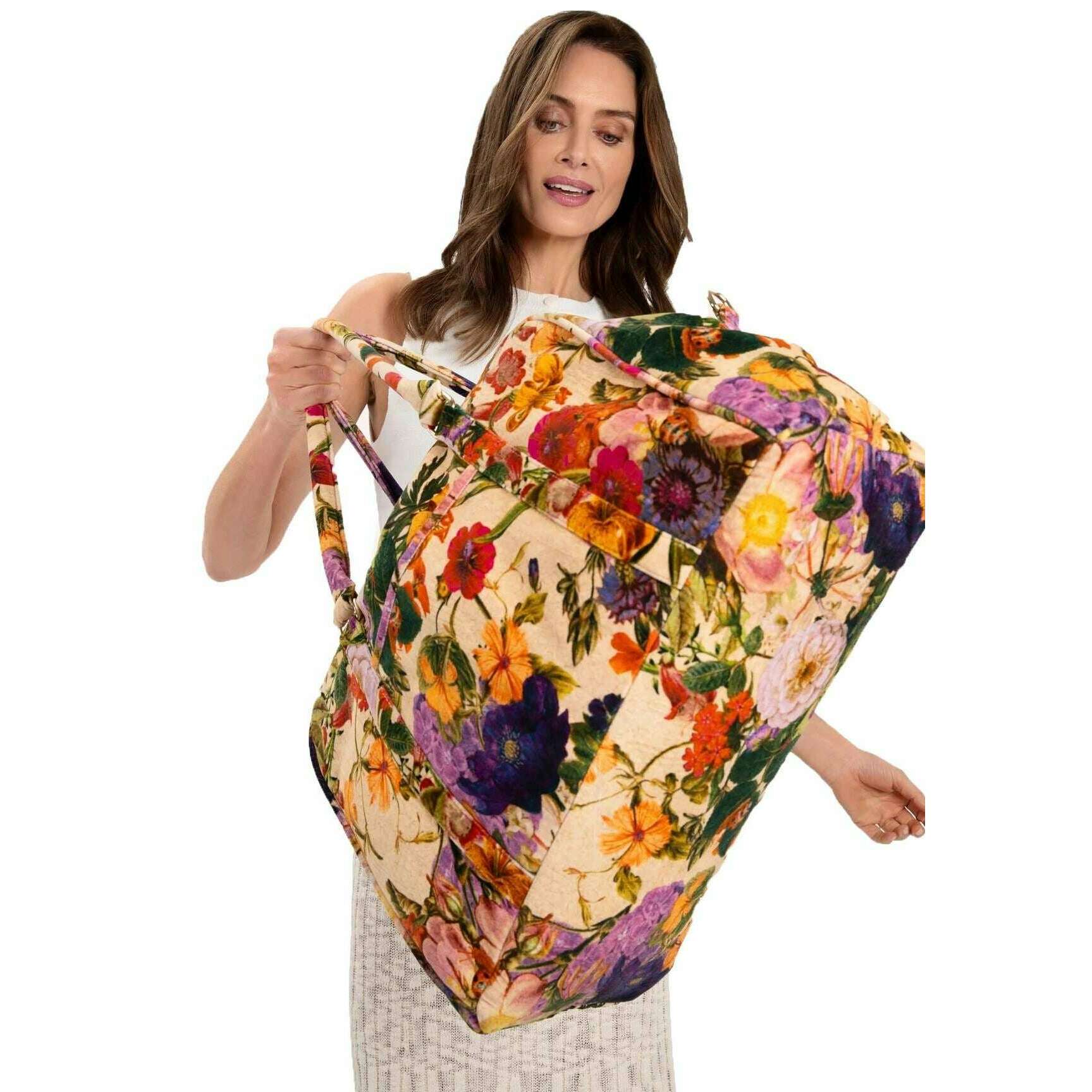 Brought to you by the brand Powder, this cream women's posy luxe weekender bag is made from 100% cotton velvet . It measures 42cm(height) x 31cm(width) x 18cm(depth). All the bags come complete with powder tags. The Powder Posy Luxe Weekender Bag - Cream is a practical and diverse bag perfect for weekends away or travelling. The stunning design adds timeless flair, and the twin carry handles and long adjustable shoulder strap make it a comfortable carry. This piece offers optimal storage with its large main compartment and exterior pocket for all of your smaller essentials.