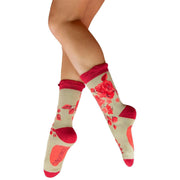 Powder Rouge Blooms Ankle Socks - Beige/Pink