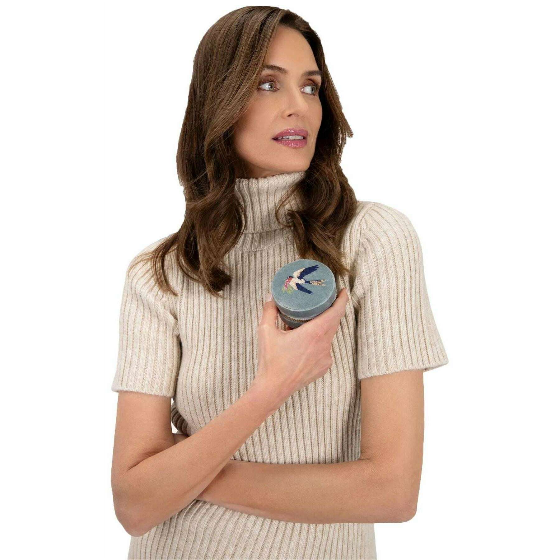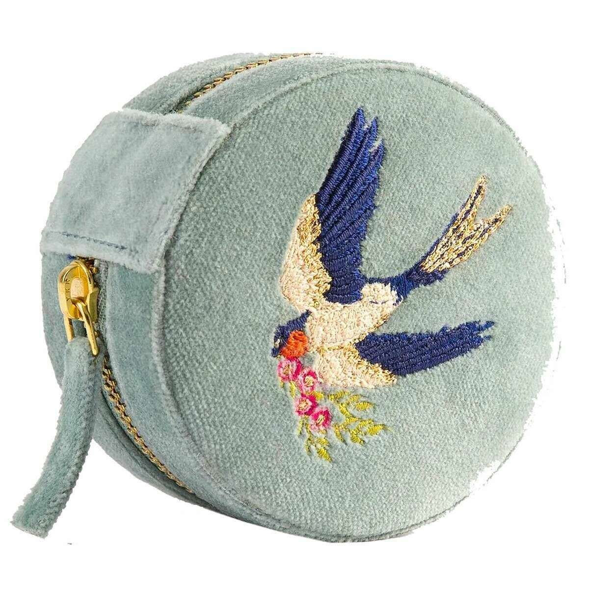 Powder Swooping Swallows Round Velvet Jewellery Box - Ice Blue