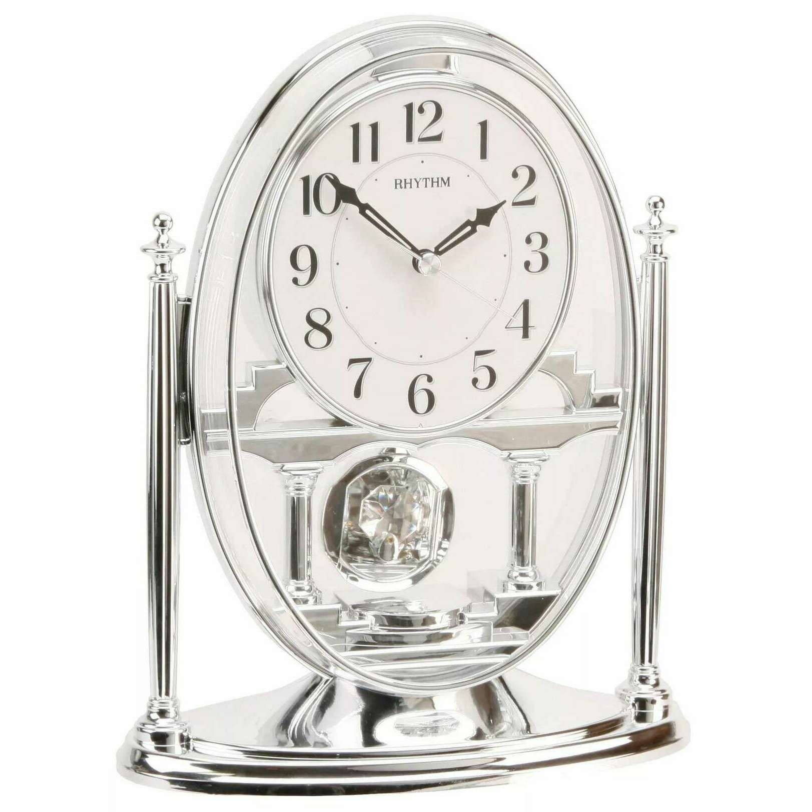 Rhythm Pendulum and Acrylic Decoration Mantel Clock - Silver