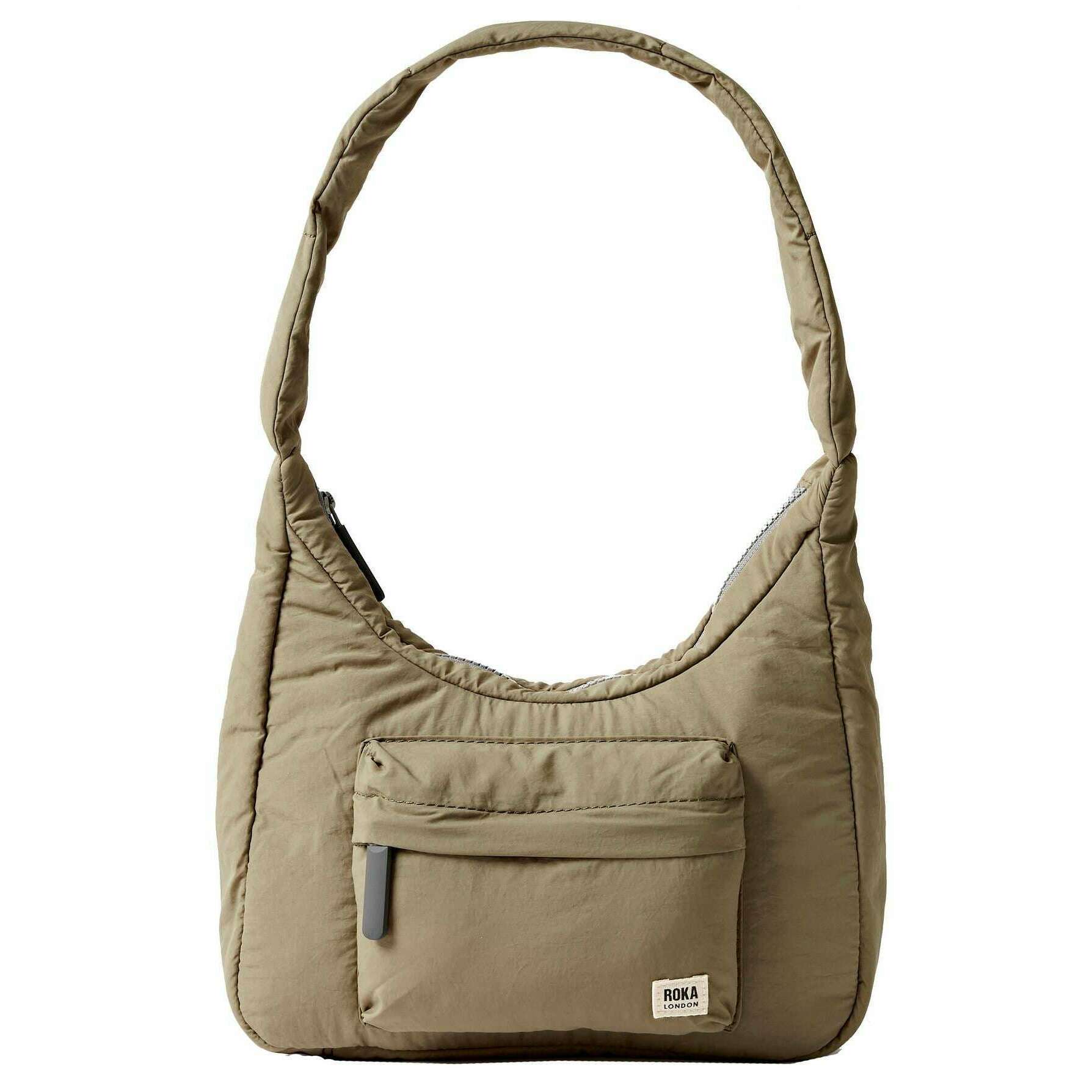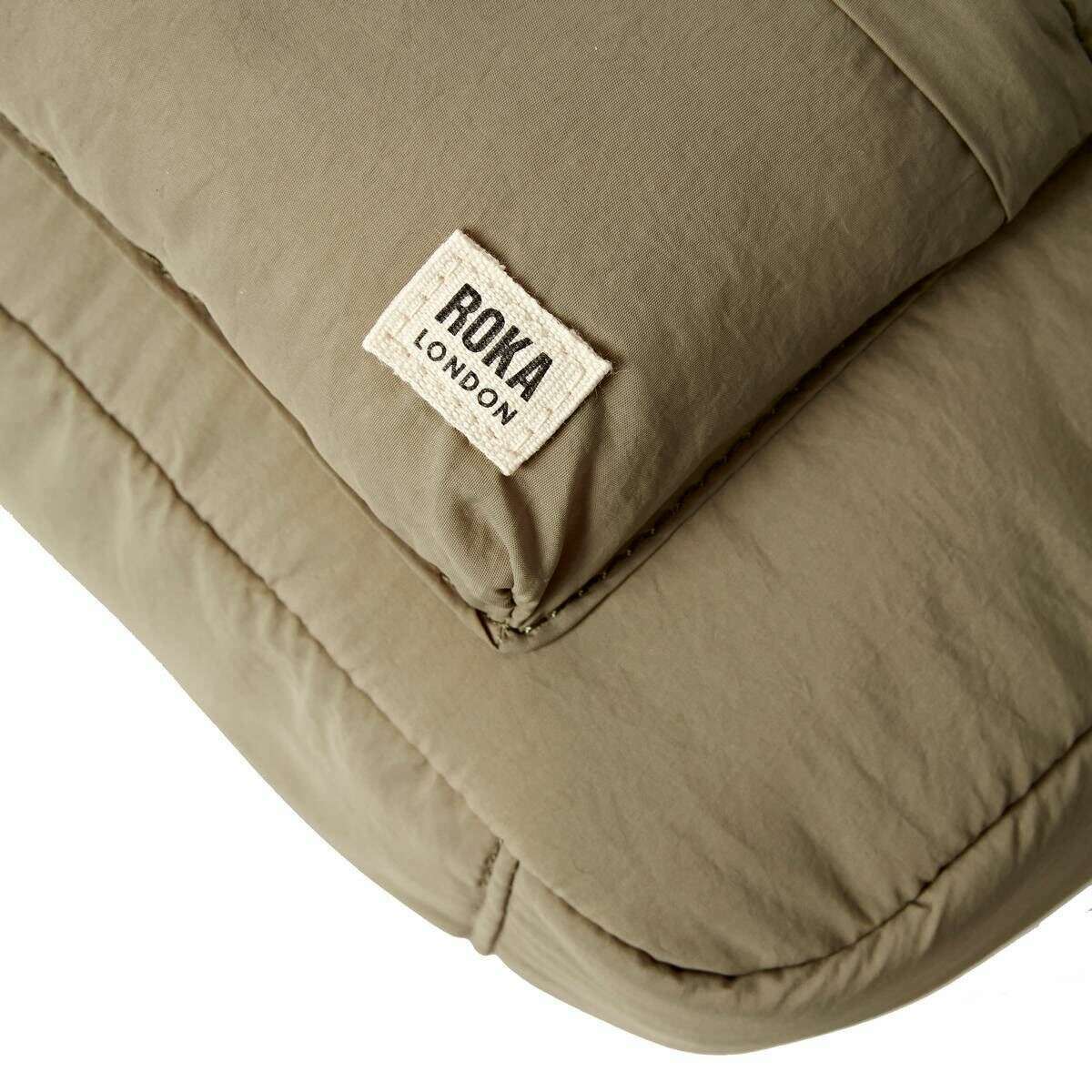 This well made unisex belsize recycled taslon small handbag from Roka comes in a taupe beige colour and is manufactured from 100% recycled nylon. It measures 25cm(height) x 28cm(width) x 10cm(depth). All the bags come complete with roka packaging. The Roka Belsize Recycled Taslon Small Handbag - Taupe Beige is a stylish and versatile puff taslon bag that combines functionality with a delightful design. With a strap that allows you to wear over the shoulder, this smaller bag features a spacious interior, nylon zipped pocket and extra compartments for all your essentials. There is an external puffed B-pocket for quick access to your most used items whilst on the move. Perfect for work, travel or weekend adventure, while giving off contemporary, eye-catching vibes.