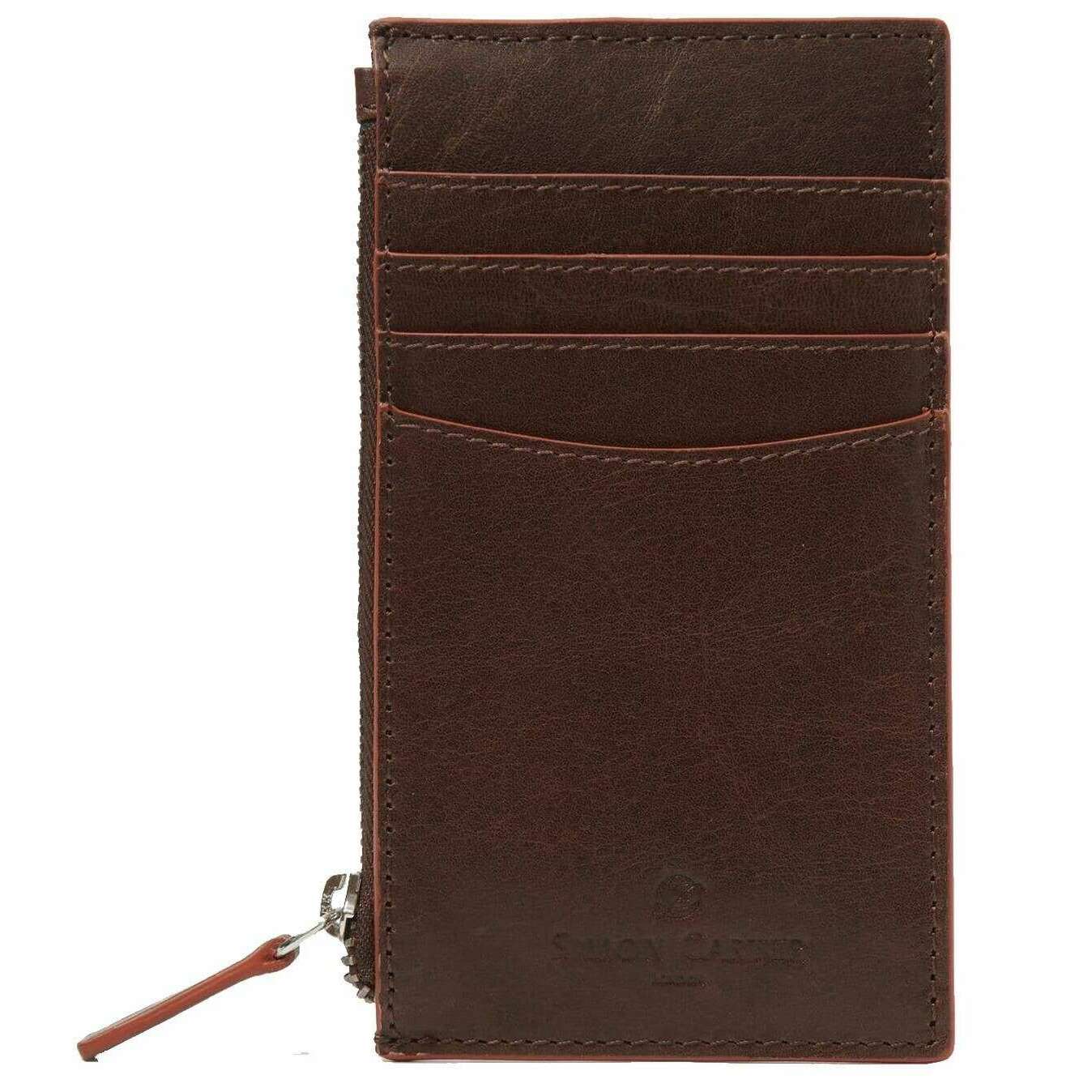 Simon Carter Contrast Edge Zip Credit Card Wallet - Brown/Red