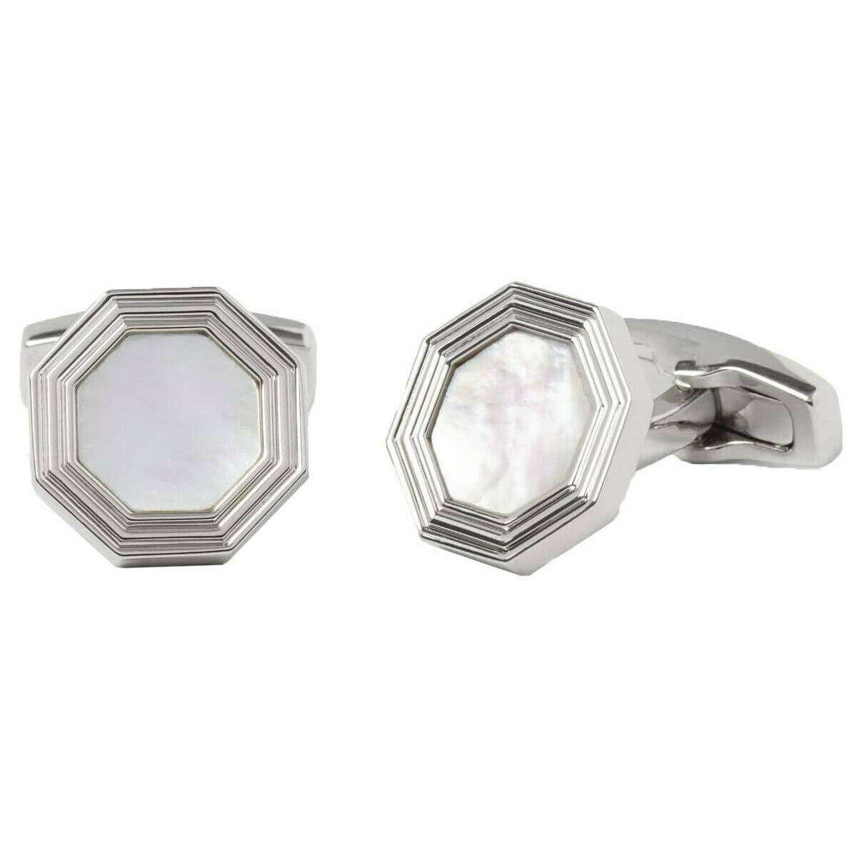 Designer Simon Carter have brought you these men's rhodium plated metal and mother of pearl cufflinks using white/silver tones. All the cufflinks come complete with simon carter packaging. The Simon Carter Monty Mother of Pearl Cufflinks - White/Silver feature an octagonal frame design with a mother of pearl stone. This set of cufflinks are the perfect finishing touch for any formal occasion and make a great gift for all gentlemen!