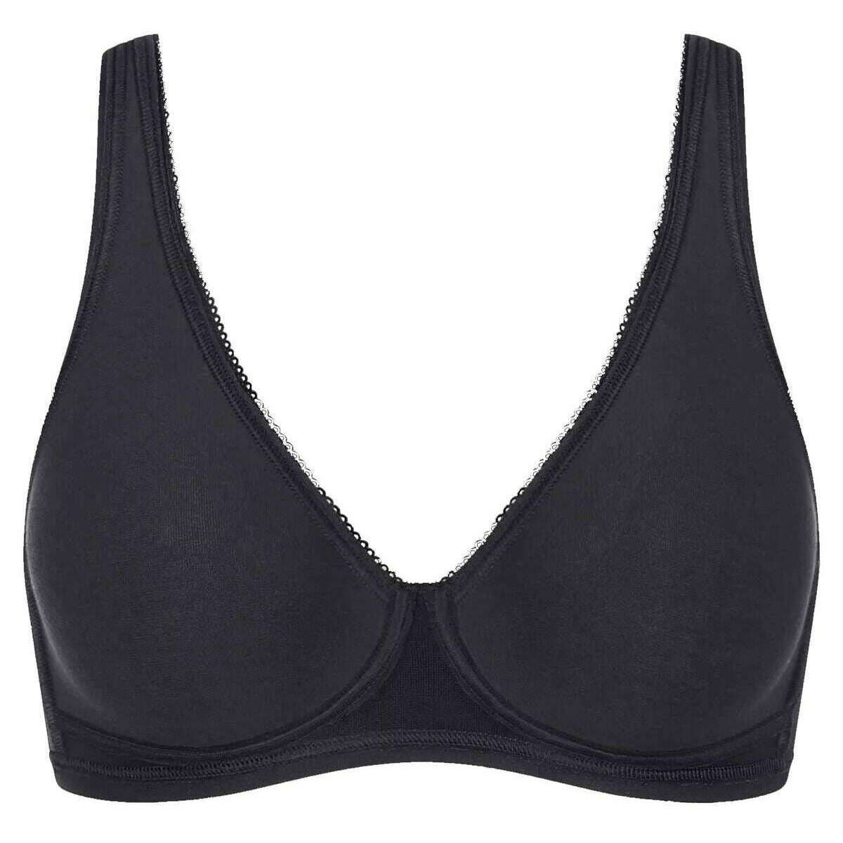Brought to you by the brand Sloggi, this black women's basic+ soft bra is made from 80% cotton, 18% elastane and 2% polyamide. Also the black underwear is designed in a plain pattern, It is recommended to machine wash at 40 degrees to keep this underwear in good condition. All the underwear comes complete with sloggi packaging. The Sloggi Basic+ Soft Bra - Black is a must-have for women looking for ultra comfort and luxury. This bra has been crafted from high-quality organic cotton that is made to last whilst upholding the soft feel and elasticity. The non-padded moulded cups, medium support and adjustable wider straps has been carefully designed to ensure a comfortable fit for an everyday wear, and the seamless fit gives an invisible look under any outfit.