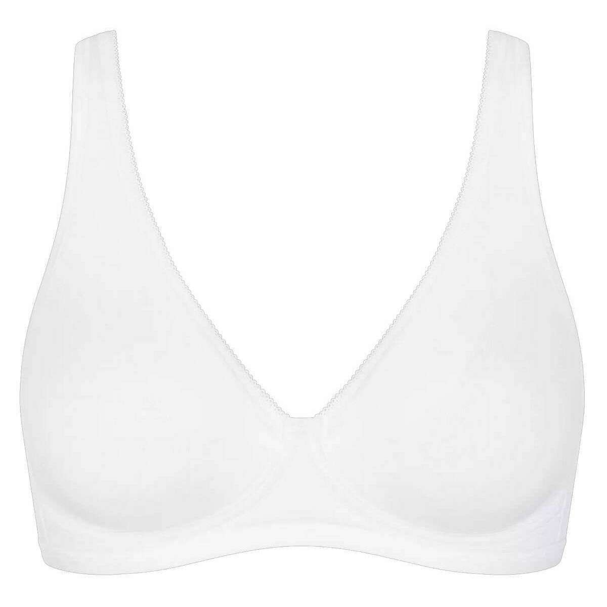 This women's basic+ soft bra has been made from 80% cotton, 18% elastane and 2% polyamide, featured in a white colour and is from the brand Sloggi. Also the white underwear is designed in a plain pattern, It is recommended to machine wash at 40 degrees to keep this underwear in good condition. All the underwear comes complete with sloggi packaging. The Sloggi Basic+ Soft Bra - White is a must-have for women looking for ultra comfort and luxury. This bra has been crafted from high-quality organic cotton that is made to last whilst upholding the soft feel and elasticity. The non-padded moulded cups, medium support and adjustable wider straps has been carefully designed to ensure a comfortable fit for an everyday wear, and the seamless fit gives an invisible look under any outfit.