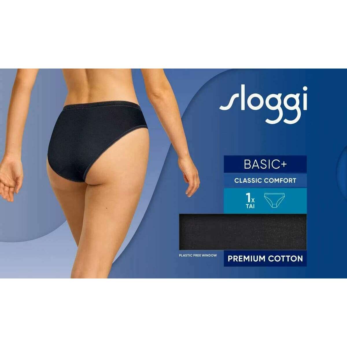 Brought to you by the brand Sloggi, this black women's basic+ tai knickers is made from 95% cotton and 5% elastane. Also the black underwear is designed in a plain pattern, It is recommended to machine washable at 60degrees to keep this underwear in good condition. All the underwear comes complete with a sloggi presentation box. The Sloggi Basic+ Tai Knickers - Black are a must-have for women looking for ultra comfort and reliability. This pair has been crafted from high-quality cotton jersey that is made to last whilst upholding the soft feel and elasticity. The classic cut with a high waistline has been carefully designed to ensure a comfortable fit for an everyday wear.