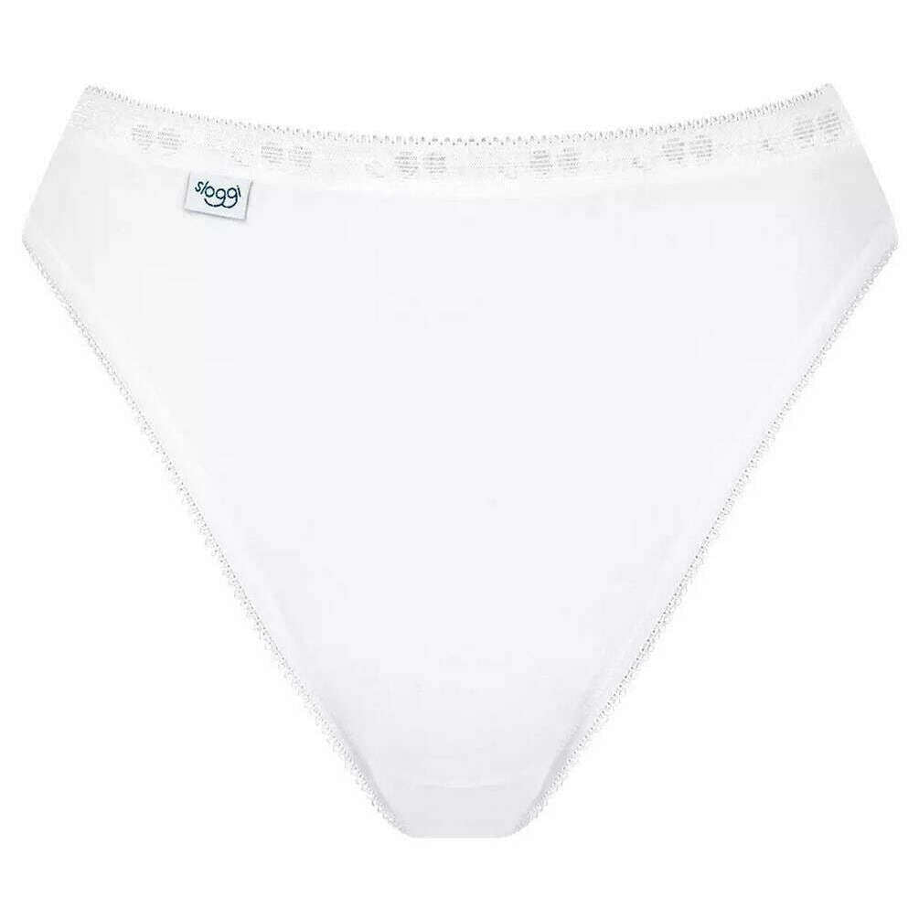 Brought to you by the brand Sloggi, this white women's basic+ tai knickers is made from 95% cotton and 5% elastane. Also the white underwear is designed in a plain pattern, It is recommended to machine washable at 60degrees to keep this underwear in good condition. All the underwear comes complete with a sloggi presentation box. The Sloggi Basic+ Tai Knickers - White are a must-have for women looking for ultra comfort and reliability. This pair has been crafted from high-quality cotton jersey that is made to last whilst upholding the soft feel and elasticity. The classic cut with a high waistline has been carefully designed to ensure a comfortable fit for an everyday wear.