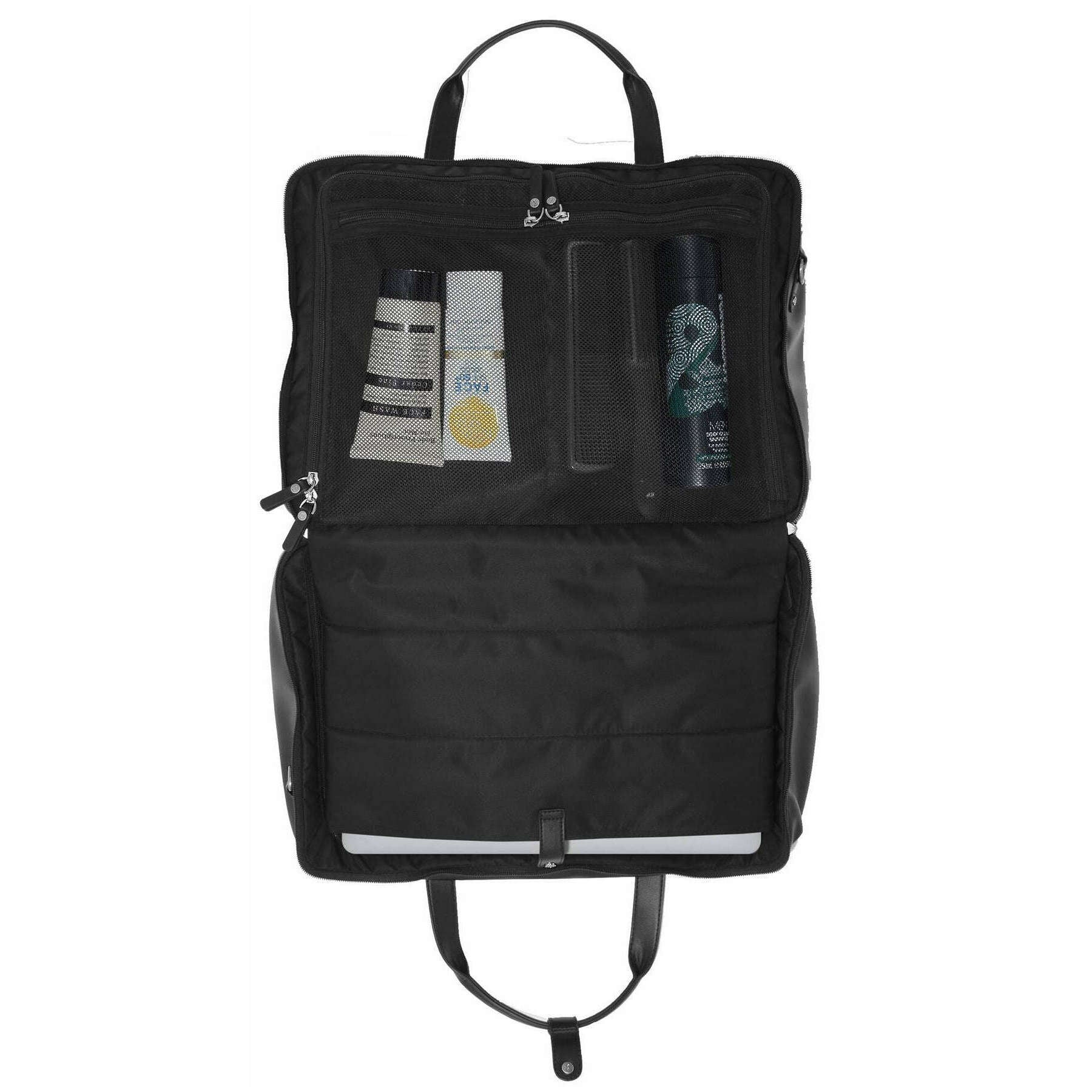 • Handles , Adjustable Strap , Backpack Straps , Luggage Loop , Double Zip Fastening , Removable Key and Padlock , Large Zipped Pocket , Velvet-Lined Laptop Pocket , Two Large Zipped Compartments , Compression Straps , Additional Pockets and Compartments