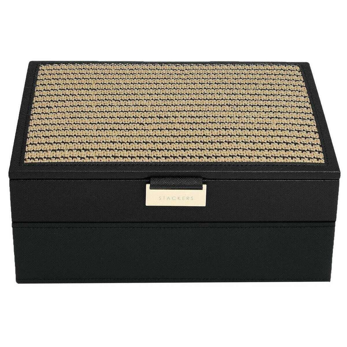Stackers Classic Set of 2 Jewellery Box - Black Raffia