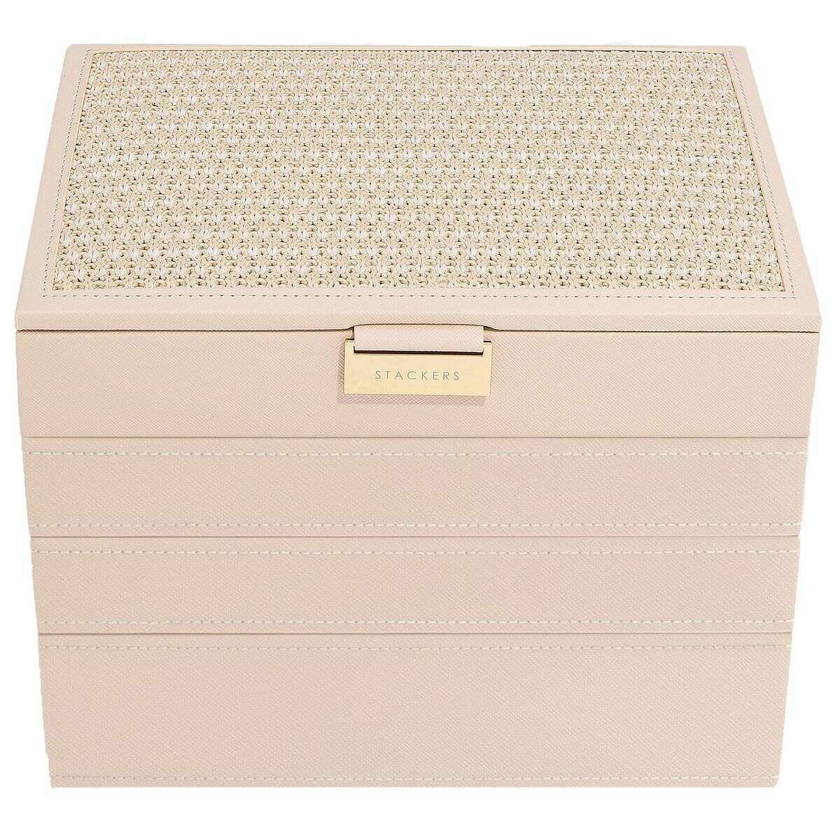 Stackers Classic Set of 4 Jewellery Box - Blush Pink Raffia