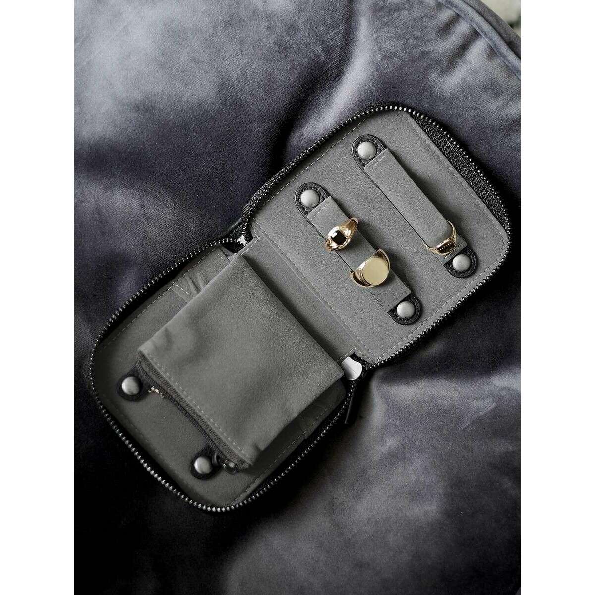 Using black faux leather and velvet, this compact jewellery roll by Stackers is perfect for women and a must have. It measures 2.5cm(height) x 11cm(width) x 11cm(depth). It is recommended to wipe clean to keep this jewellery box in good condition. All the jewellery boxes come complete with stackers packaging. The Stackers Compact Jewellery Roll - Black makes for the perfect travel companion. Its zip around design will keep your valuable pieces secure inside and the velvet interior will ensure they are kept pristine. It features storage for your rings, 2 necklaces or chains and a versatile pouch which can hold things such as cufflinks or tie pinks. Its compact silhouette makes it ideal for short trips as it can slip into your day to day bag.