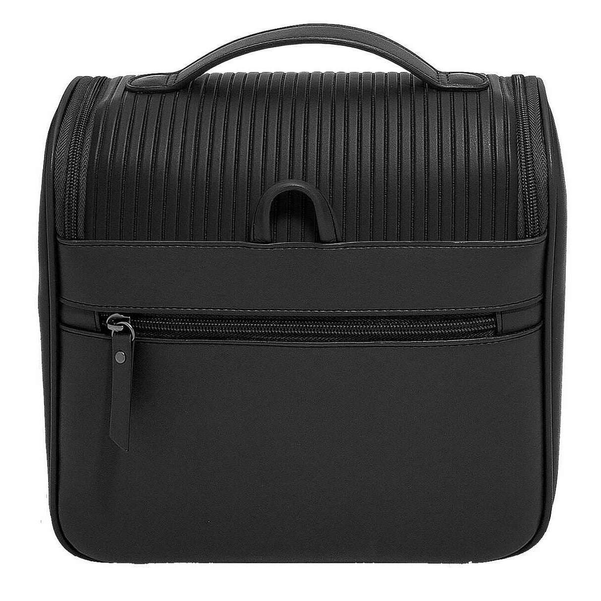 Introducing this women's fluted hanging wash bag by Stackers, it is manufactured from faux leather in a black colour. It measures 26cm(height) x 26cm(width) x 15.5cm(depth). All the bags come complete with stackers packaging. The Stackers Fluted Hanging Wash Bag - Black is a must have when on the go! This classy fluted black hanging washbag features three main compartments, one being a removable toiletry bag. Perfect for weekend getaways with its convenient hanging hook and many compartments.