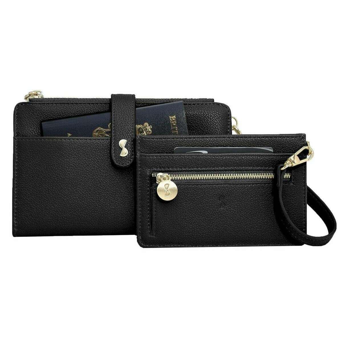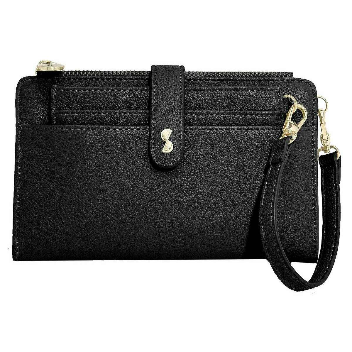 This women's large purse has been made from faux leather, featured in a black colour and is from the brand Stackers. It measures 12.5cm(height) x 19.5cm(width) x 3cm(depth). All the purses come complete with stackers packaging. The Stackers Large Purse - Black is a must have when on the go! This classic and trendy black purse features multiple pockets for money and cards, a removable card purse and a cosmetic mirror. Comes complete with a removable wrist strap and external phone pocket. Perfect for any outing!