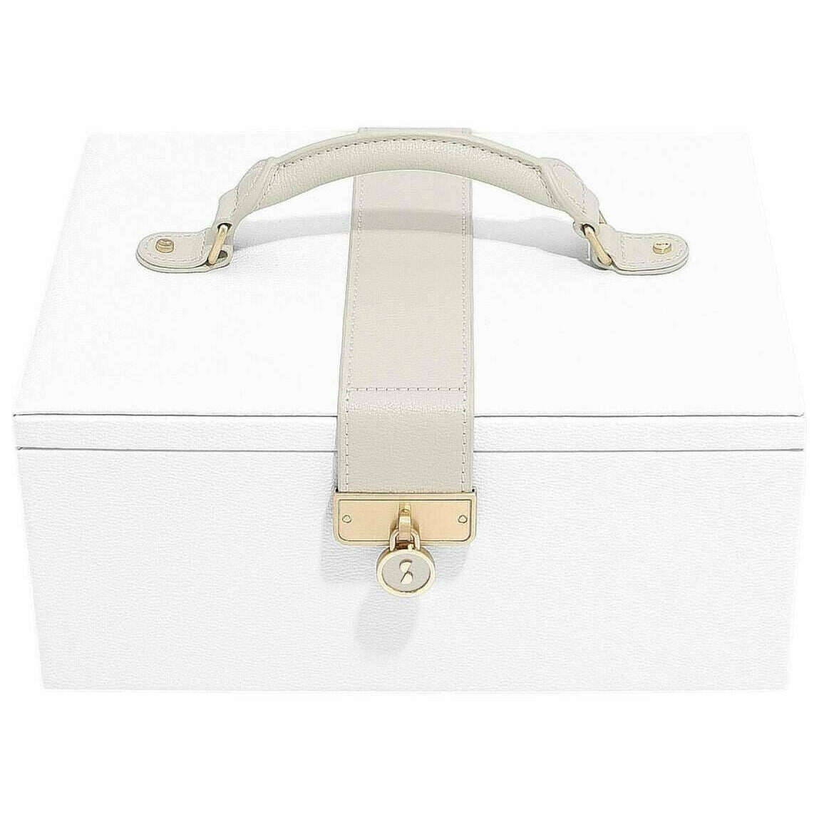 This women's luxury classic jewellery box by the brand Stackers is made from faux leather and velvet and is showcased in white. It measures 16.3cm(height) x 25cm(width) x 18cm(depth). It is recommended to wipe clean to keep this jewellery box in good condition. All the jewellery boxes come complete with stackers packaging. The Stackers Luxury Classic Jewellery Box - White Pebble will look stunningly elegant on your dresser of vanity table while giving you stylish organisation for your jewellery collection. It opens up to reveal a practical mirror on the lid s underside, a top tray which includes a ring roll, long necklace section as well as multiple sections that you can use for other jewellery. Underneath the top tray is storage for chunkier jewellery with larger sections to give you flawless organisation. It can all be closed up with the popper closure and carried using its practical handle.