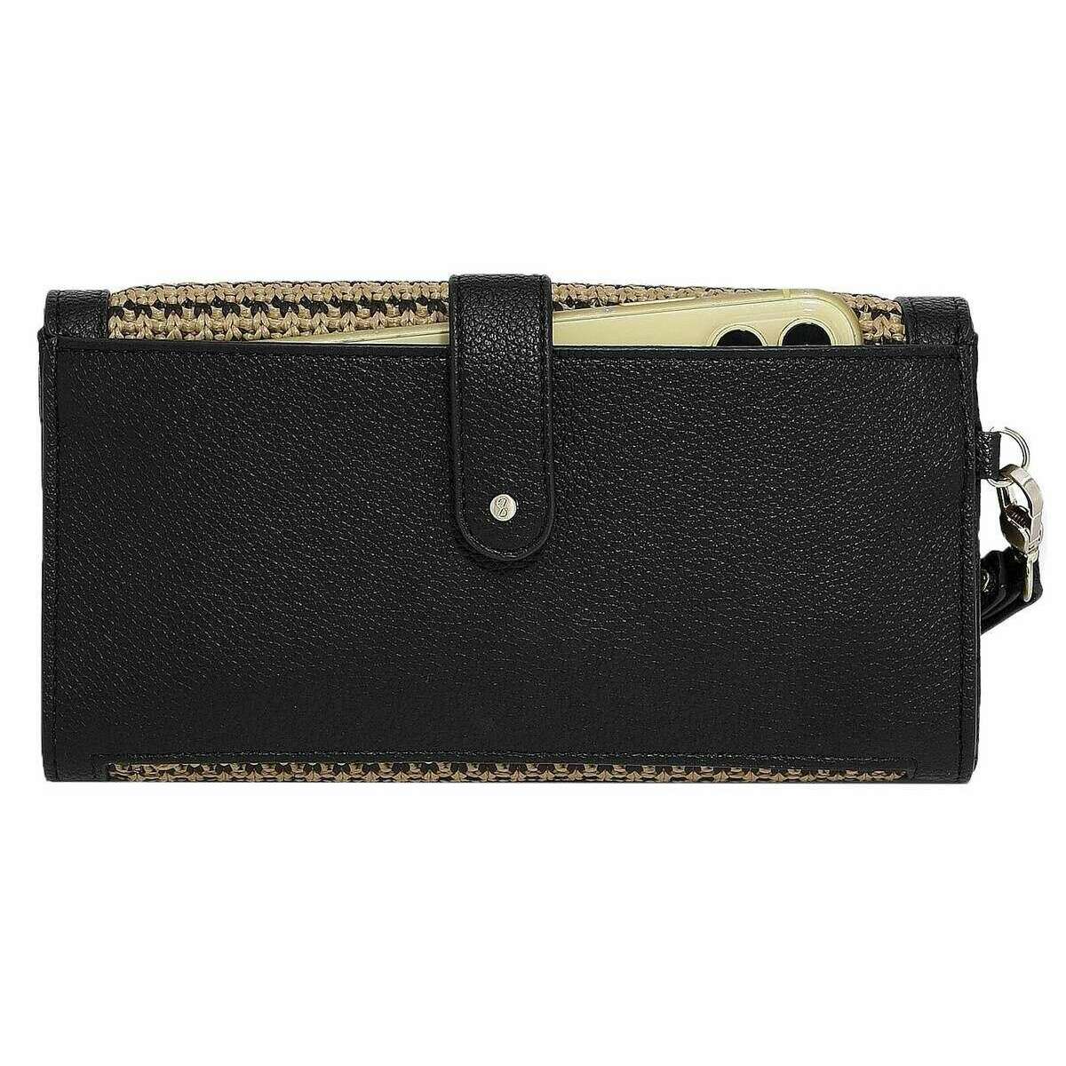 This women's raffia purse by the brand Stackers is made from raffia effect and faux leather and is showcased in black. All the purses come complete with stackers packaging. The Stackers Raffia Purse - Black Raffia is a must have when on the go! This unique and trendy black raffia purse features multiple pockets for money or cards, a removable card purse and a cosmetic mirror. Comes complete with a removable wrist strap for diverse use.