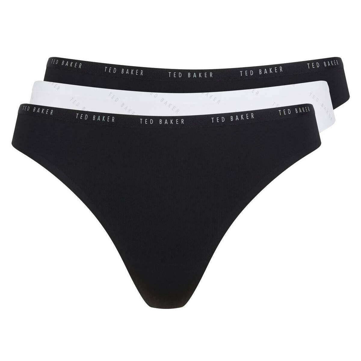 Perfect for women is this Ted Baker black indie 3 pack embossed no show thongs, it is also made from 92% polyamide and 8% elastane. Also the black underwear is designed in a plain pattern, 3 pack underwear is value for money ensuring they are a good buy, All the underwear comes complete with ted baker packaging. The Ted Baker Indie 3 Pack Embossed No Show Thongs - Black is a great set for those looking for a luxurious wear. The three pack are perfect for having throughout the week with two plain pairs with a logo branded waistband and the other with smooth waistband and branding all over. The soft and stretchy fabric ensures comfortability and the no show feature offers a seamless finish.