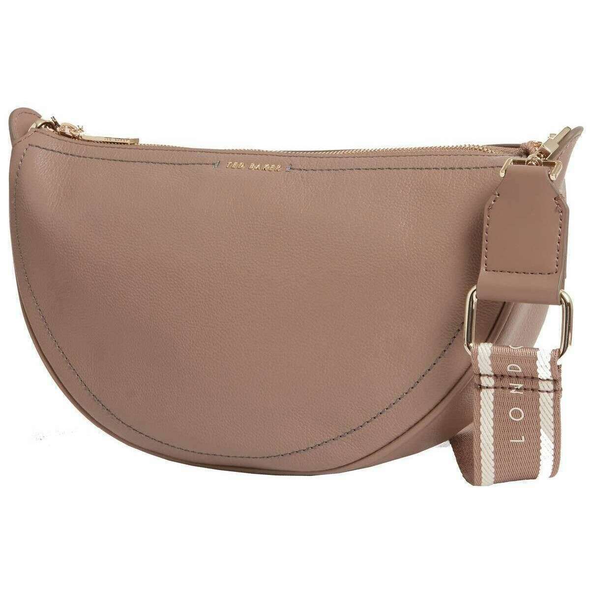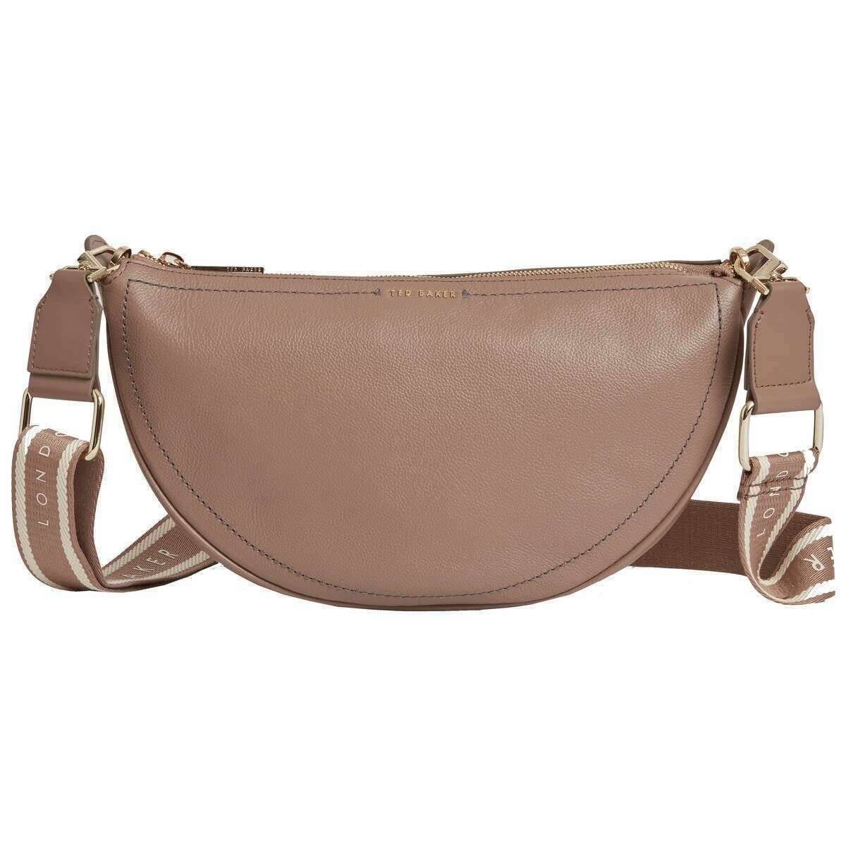 This lorreen webbing leather half moon crossbody bag for women is fashioned by the brand Ted Baker in a grey colour and is made from 100% bovine leather. It measures 18cm(height) x 30cm(width) x 8cm(depth). All the bags come complete with ted baker dust bag. The Ted Baker Lorreen Webbing Leather Half Moon Crossbody Bag - Taupe is made to suit an everyday look to night attire with the versatile styling options. This hands-free bag has been completely crafted from high-quality leather that is made to last. Featuring a stitched front detail to add depth and dimension to your look, an adjustable branded strap for endless stylish options and an interior pocket for organisation. Even though this bag may look small and compact it has a surprisingly large main compartment that is great at holding all of your essentials.