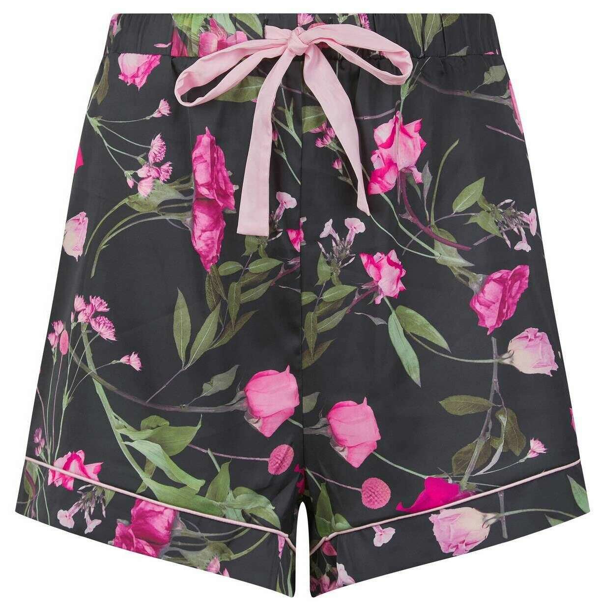 These penny short satin pyjamas for women are fashioned by the brand Ted Baker in a black colour and are made from 97% polyester and 3% spandex. Also the black digital print pyjamas are designed in a floral pattern, All the pyjamas come complete with ted baker packaging. The Ted Baker Penny Short Satin Pyjamas - Black Digital Print feature a floral design all over and pink piping for contrast. These pjs are the perfect pair for any woman featuring short sleeves and shorts to ensure for a breathable wear great for those who like to snuggle up but like to be cool in bed. These also feature an elasticated waistband and tie for a great fit with a loose shape. These would make the perfect gift to a girly loved one. Finished with a Ted Baker metal embellishment tag on both top and bottom.