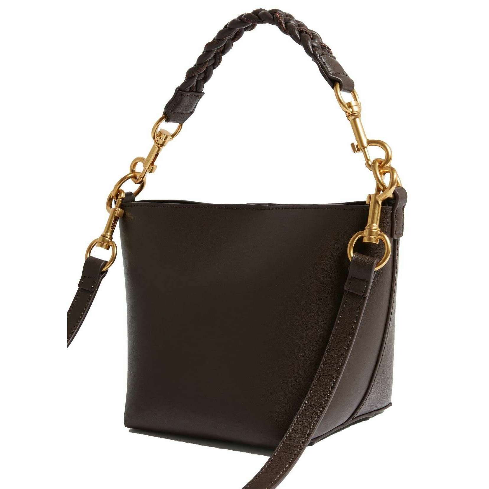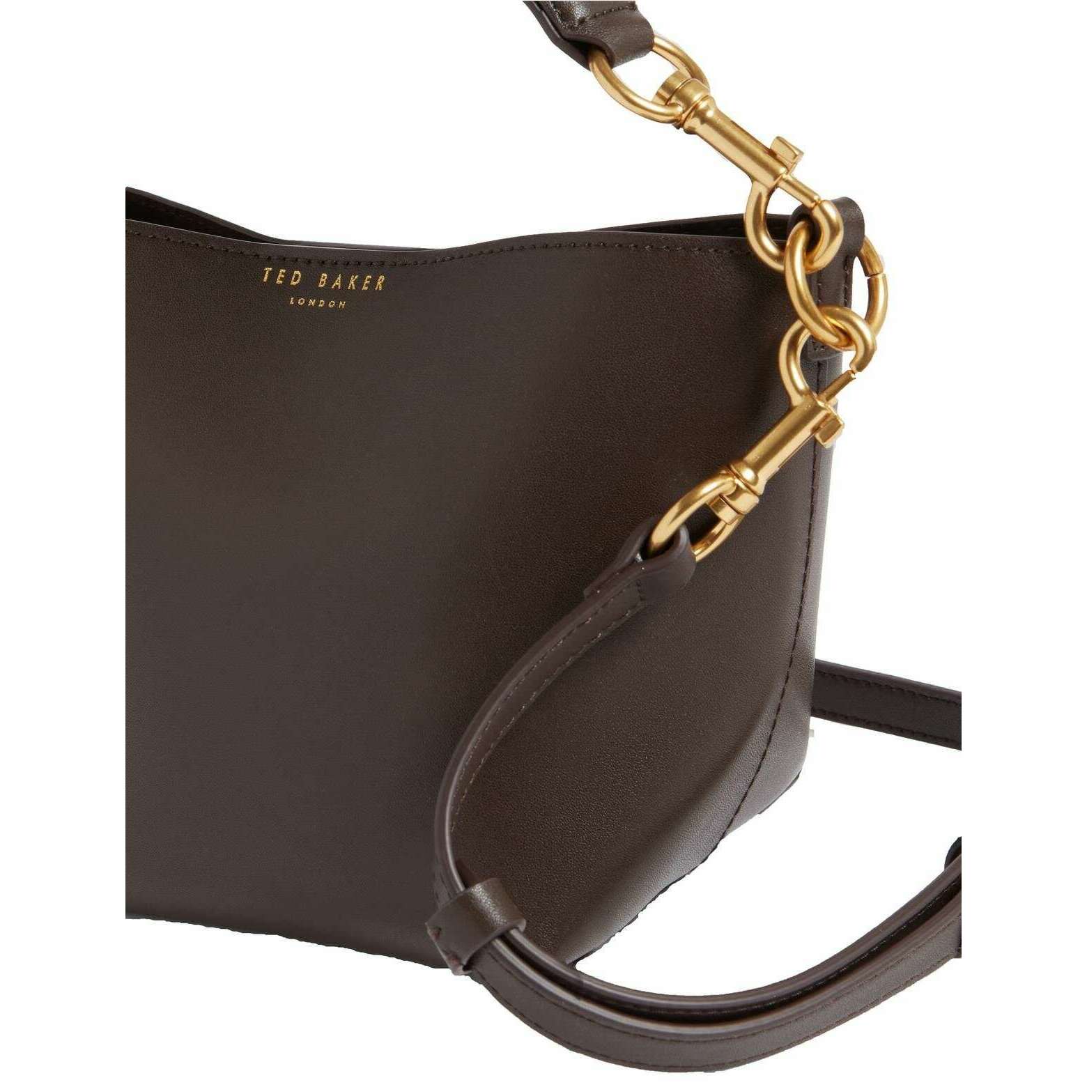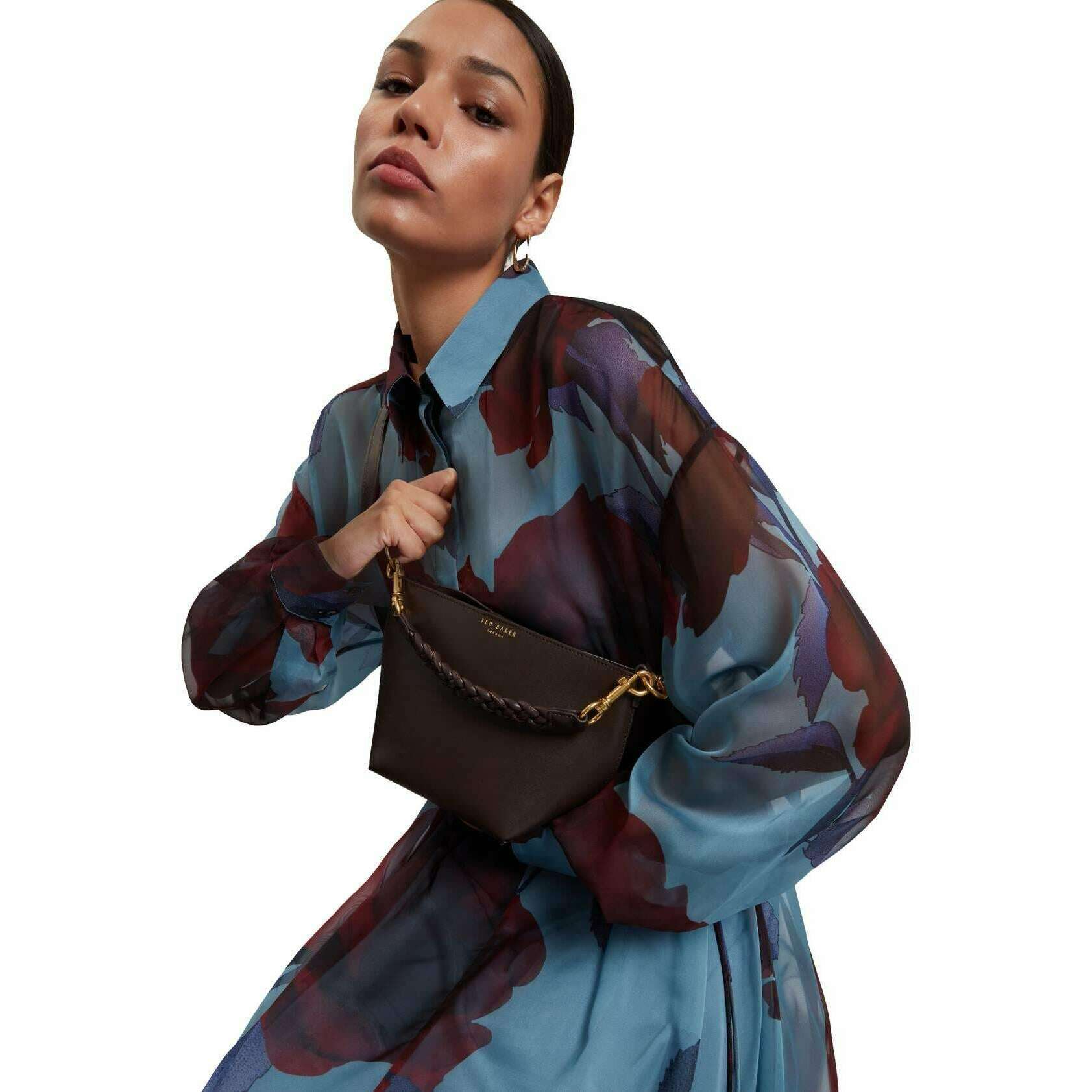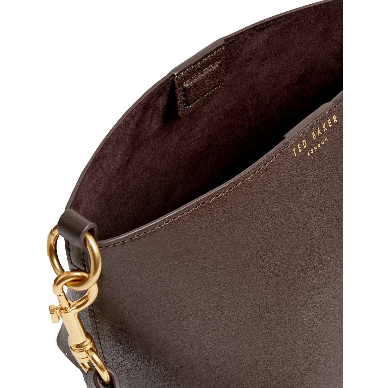 Brought to you by the brand Ted Baker, this chocolate brown women's wavely plaited handle small bucket tote bag is made from 100% bovine leather shell. It measures 15cm(height) x 22cm(width) x 13cm(depth). All the bags come complete with ted baker packaging. The Ted Baker Wavely Plaited Handle Small Bucket Tote Bag - Chocolate Brown will elevate any outfit from casual to elegant. This chocolate brown bag has a plaited leather shoulder strap and an adjustable leather crossbody strap. Suitable for everyday use or a special occasion, this bag is light to carry and easily accessible with its magnetic closure. Completing this bag is the subtle Ted Baker branding on the top of the bag.