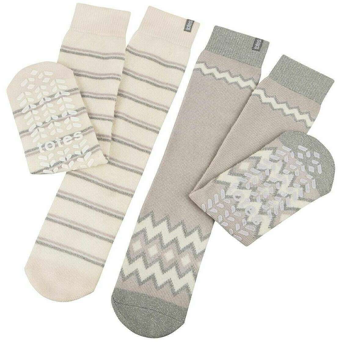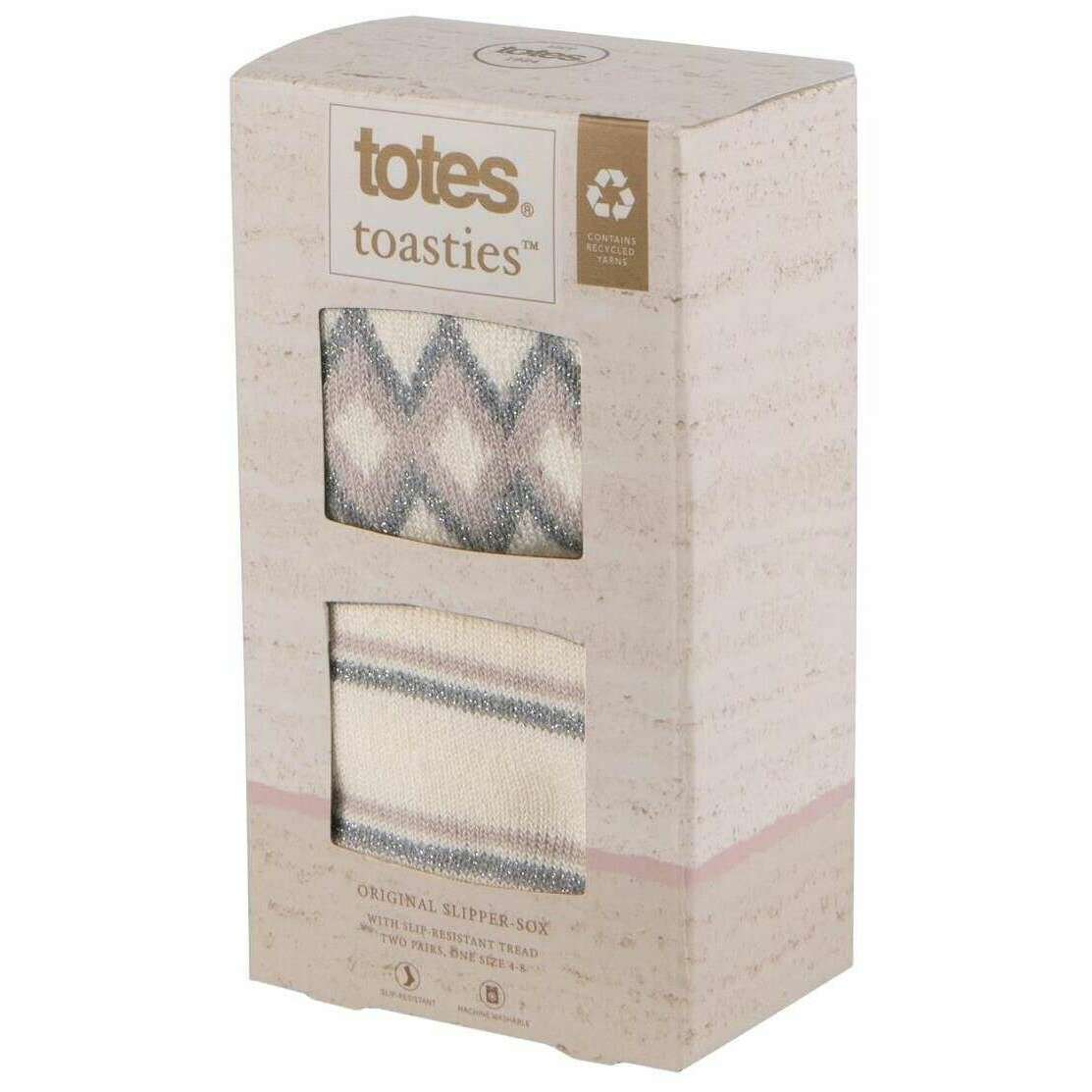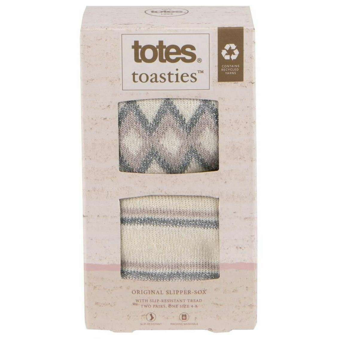 Totes Toasties 2 Pack Original Slipper Socks - Fairisle/Plain Beige