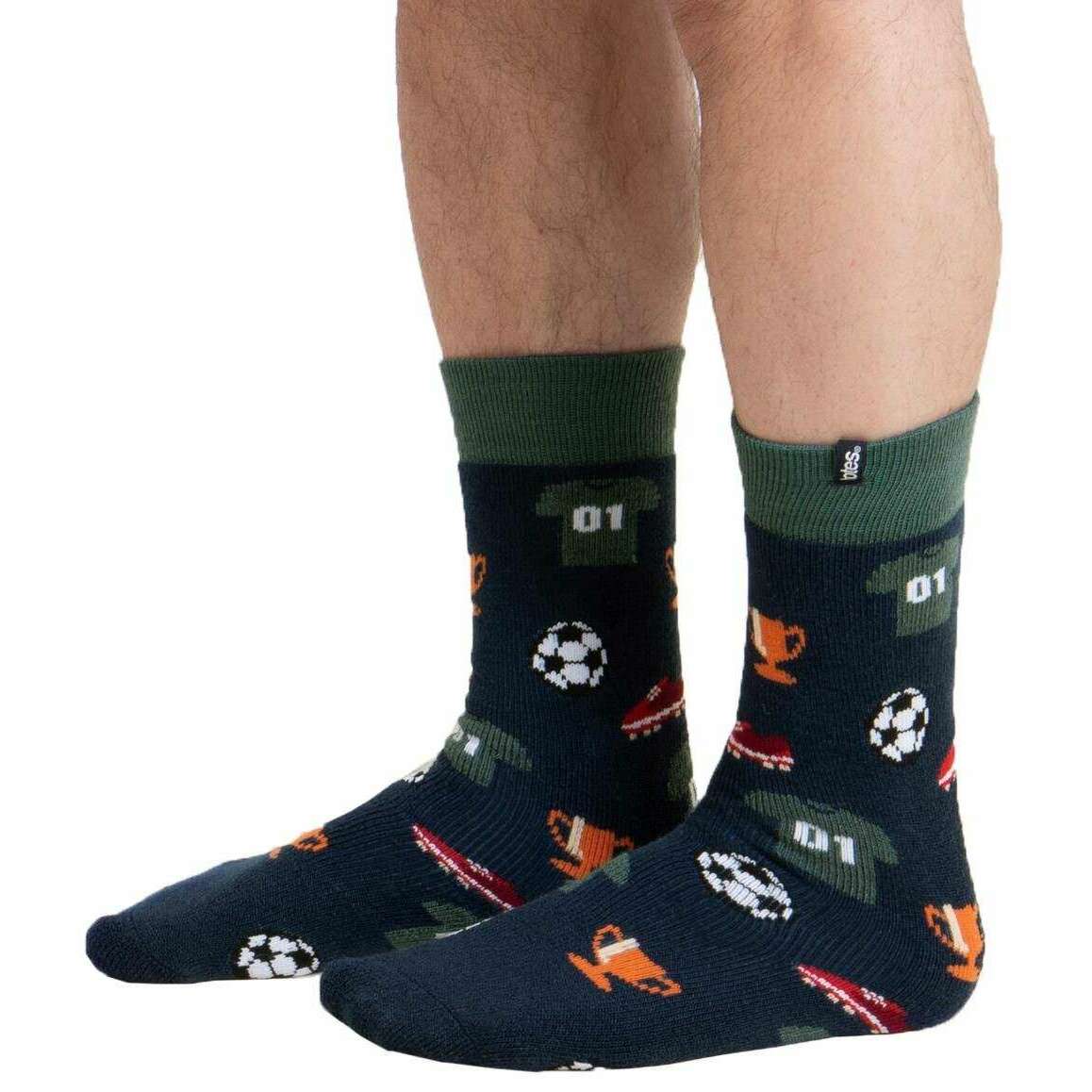 These men's 2 pack original slipper socks have been made from footballs: 79% acrylic and 21% polyamide stripes: 45% polyester, 25% viscose, 16% acrylic and 14% polyamide, featured in a blue colour and are from the brand Totes Toasties. Also the football/stripe blue socks are designed in a unique pattern, It is recommended to machine wash at 30 degrees to keep these socks in good condition. 2 pack socks are value for money ensuring they are a good buy, All the socks come complete with totes toasties packaging. The Totes Toasties 2 Pack Original Slipper Socks - Football/Stripe Blue decorative and unique are the perfect set of socks to keep your feet warm and cosy during the colder seasons for optimal protection from the cold. The fun designs are perfect for adding personality to your style. These socks have non-slip grips on the sole allowing you to walk on any surface in your house without the worry of falling and hurting yourself. Containing recycled yarns these socks make the perfect gift to your loved ones or yourself.