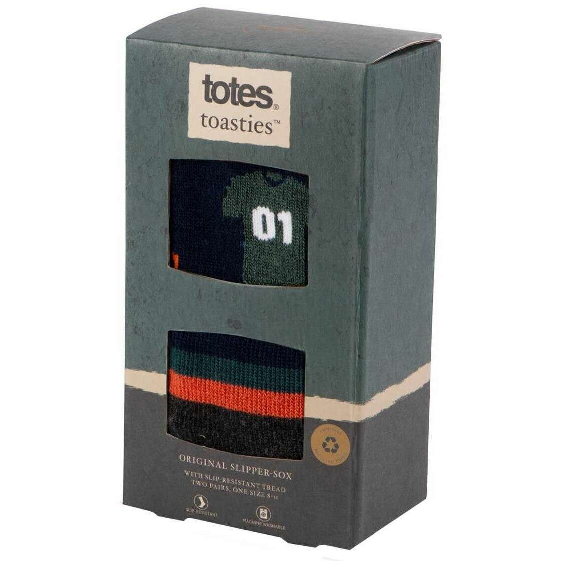 Totes Toasties 2 Pack Original Slipper Socks - Football/Stripe Blue