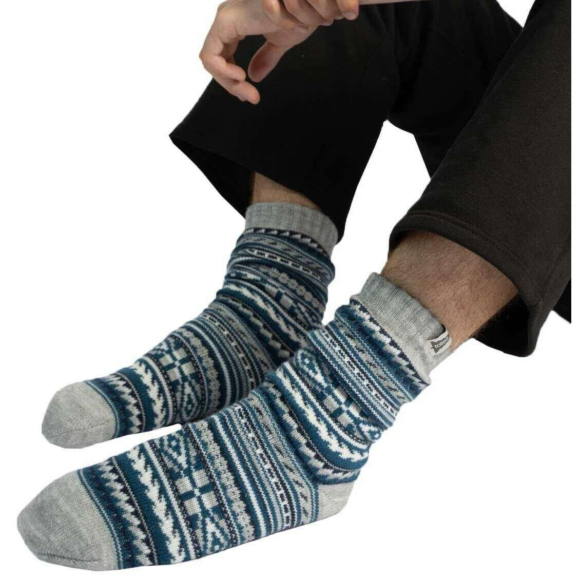 Manufactured from 69% acrylic, 31% polyester and 100% polyester lining are these blue men's fair isle slipper socks by the designer Totes Toasties. Also the blue socks are designed in a fairisle pattern, It is recommended to machine wash at 30 degrees to keep these socks in good condition. All the socks come complete with totes toasties packaging. The Totes Toasties Fair Isle Slipper Socks - Blue are the perfect pair to either do chores around the house whilst keeping your feet nice and cosy or just to have on when relaxed on the sofa watching your favourite winter movie. This fair isle design is festive and gives a Christmas touch and has been crafted with sherpa lining for optimal warmth. This pair is the perfect gift to your loved or to yourself!