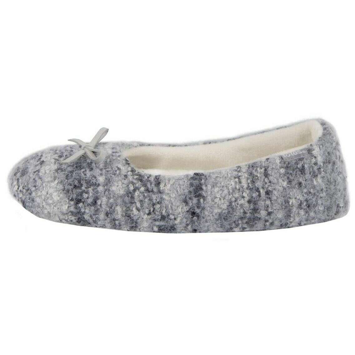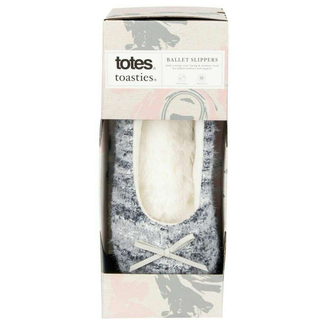 Designer Totes Toasties have brought you these women's 60% polyester, 40% acrylic and synthetic suede slippers using blue tones. Also the blue slippers are designed in a 2-tone pattern, All the slippers come complete with totes toasties packaging. The Totes Toasties Knitted Ballet Slippers - Blue cute and girly are the perfect pair to slip into to keep your feet cosy and warm with the help of the chunky knit and soft borg sherpa lining. The soft sole and memory foam is perfect for walking around the house for a flexible light feel. Complete with a pretty bow adds to the ballet slipper look.