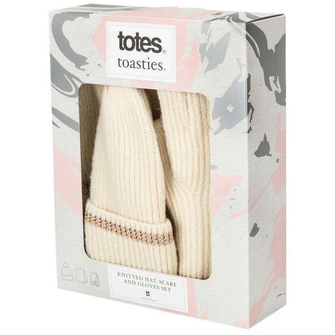 Totes Toasties Knitted Hat Scarf and Glove Gift Set - Oat Cream
