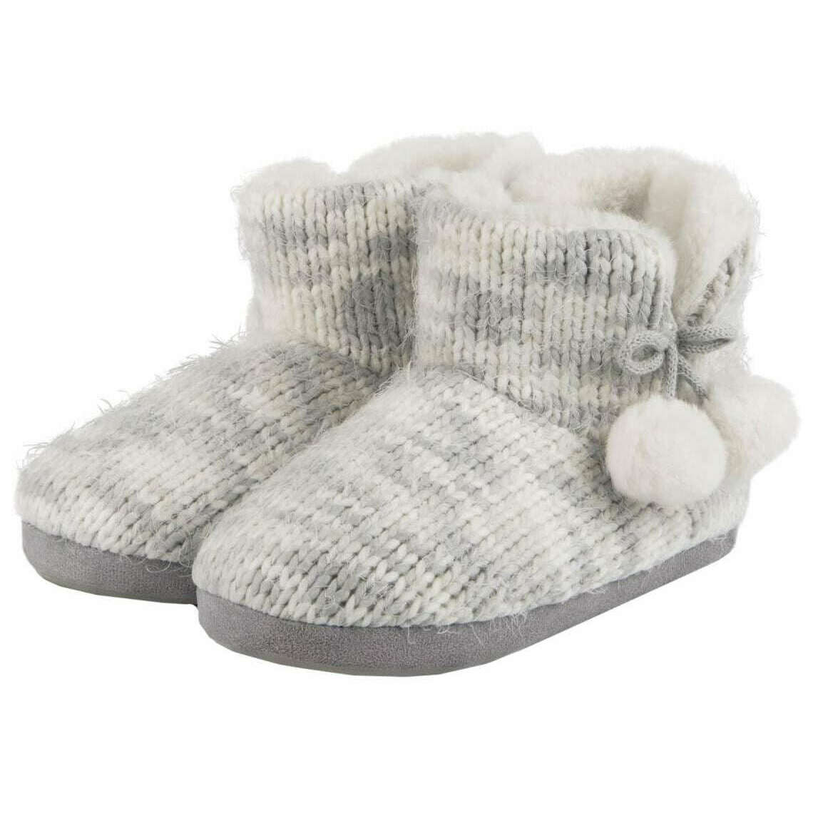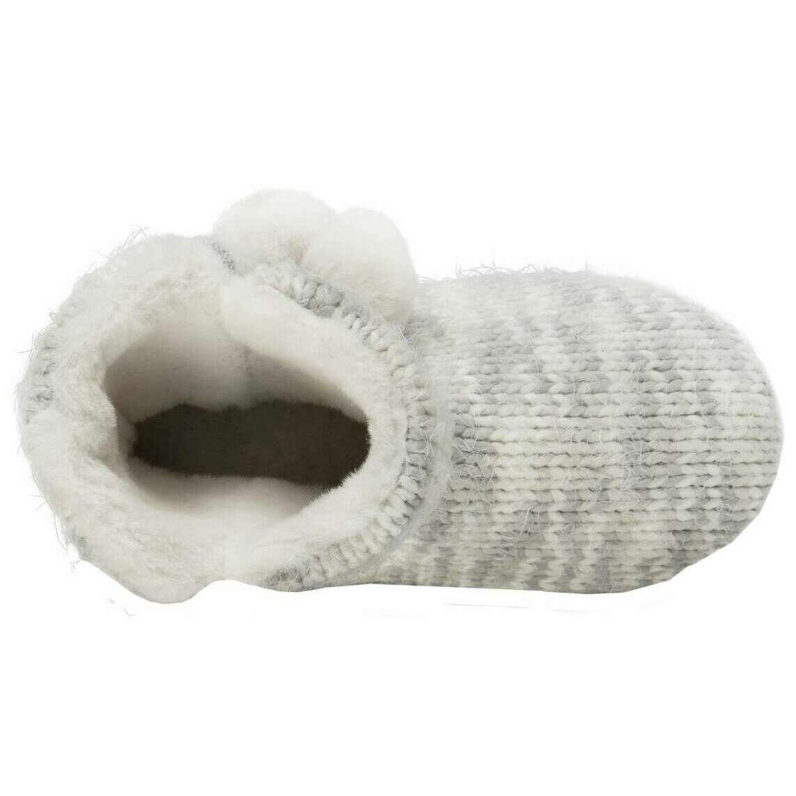 These women's space dye knitted boot slippers by the brand Totes Toasties are made from 60% polyester, 40% acrylic and synthetic suede and are showcased in grey. Also the grey slippers are designed in a 2-tone pattern, All the slippers come complete with totes toasties packaging. The Totes Toasties Space Dye Knitted Boot Slippers - Grey will pair perfectly with any of your wintery PJs for a complete cosy look to relax after a long cold day. The boot length not only keeps your feet cosy but also your ankles with the soft and warm faux fur lining, whilst the added memory foam ensures optimal comfort whilst walking around the house. Completing this look is the girly pom pom bow detail.