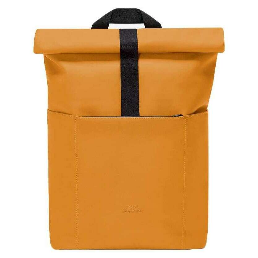 This unisex lotus hajo mini backpack by the brand Ucon Acrobatics is made from 36% polyurethane, 40% polyester, 14% calcium carbonate and 10% wood fiber and is showcased in yellow. It measures 44cm(height) x 28cm(width) x 10cm(depth). All the bags come complete with ucon acrobatics packaging. The Ucon Acrobatics Lotus Hajo Mini Backpack - Honey Mustard Yellow has been expertly manufactured from sustainable materials making this backpack waterproof and completely vegan, saving the planet one bag at a time. A tree is also planted with every bag purchase. Featuring a roll top system with a hook and loop fastener, fast access to the main compartment via a zip, two pockets on the outside, a neoprene laptop compartment (16”) compartment inside, two mesh pockets, an additional elastic band bottle holder and key strap, it truly has room for all your essentials. Comfortable carrying couldn’t be made easier as it has a reinforced back, padded and adjustable shoulder straps and a padded bottom for stability. Stylish and waterproof, you couldn’t find a more suitable backpack.