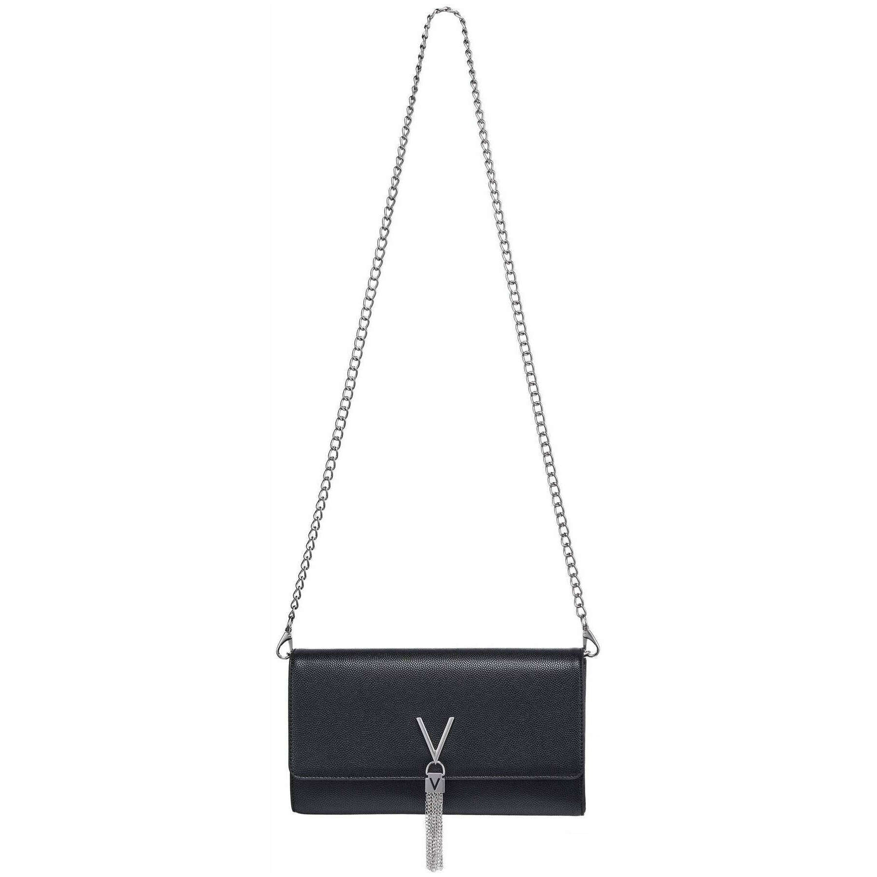 Introducing this women's divina pochette crossbody bag by Valentino, it is manufactured from 100% polyester in a nero black colour. It measures 12cm(height) x 27cm(width) x 4.5cm(depth). All the bags come complete with valentino packaging. The Valentino Divina Pochette Crossbody Bag - Nero Black will give you a luxurious accessory and timeless charm. It s the perfect size to carry with you to store your everyday essentials. The exterior showcases an elegant fold over design with chain tassels. It has a detachable and adjustable cross body strap which allows you to carry it to suit the occasion.
