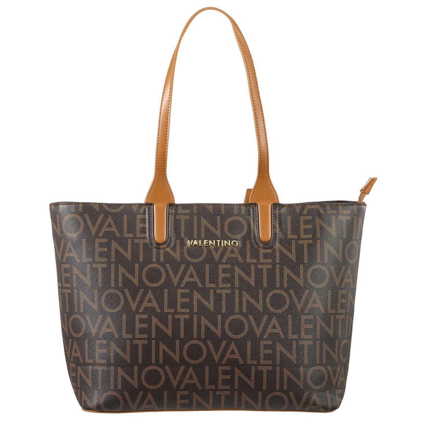 Introducing this women's regina re shopping bag by Valentino, it is manufactured from recycled polyurethane in a morto brown/natural tan colour. It measures 28cm(height) x 24cm(width) x 12.5cm(depth). All the bags come complete in valentino packaging. The Valentino Regina Re Shopping Bag - Morto Brown/Natural Tan has been adorned with a unique and original pattern which makes this piece stand out above the rest, giving you a stunning bag for your day-to-day endeavours. It features a zipped closure, offering stylish security and the contrasting top handle is perfect for grab and go carrying. The main compartment is spacious and features multiple compartments to help organise your essentials.