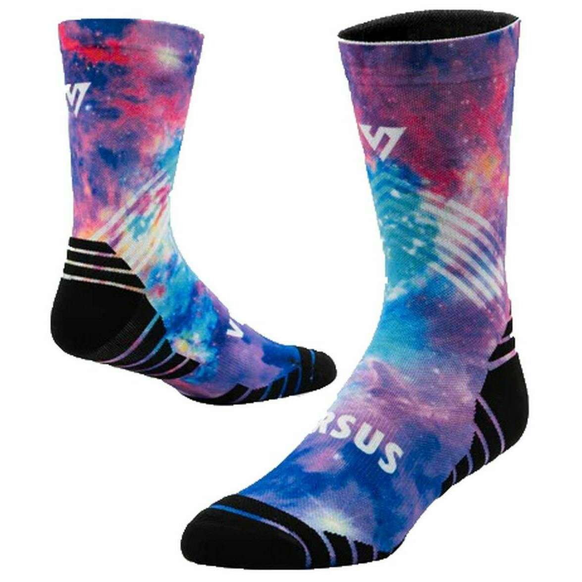 Manufactured from 93% polyester and 7% elastane are these black/blue/red unisex galaxy active crew socks by the designer Versus. Also the black/blue/red socks are designed in a unique pattern, It is recommended to wash at 30 degrees to keep these socks in good condition. All the socks come complete with versus sock tags. The Versus Galaxy Active Crew Socks - Black/Blue/Red features style and high-quality technology, designed to support your arch and ankle throughout casual wear or intense activities. These funky running socks are breathable, comfortable and perfect for marathons and everyday runs.