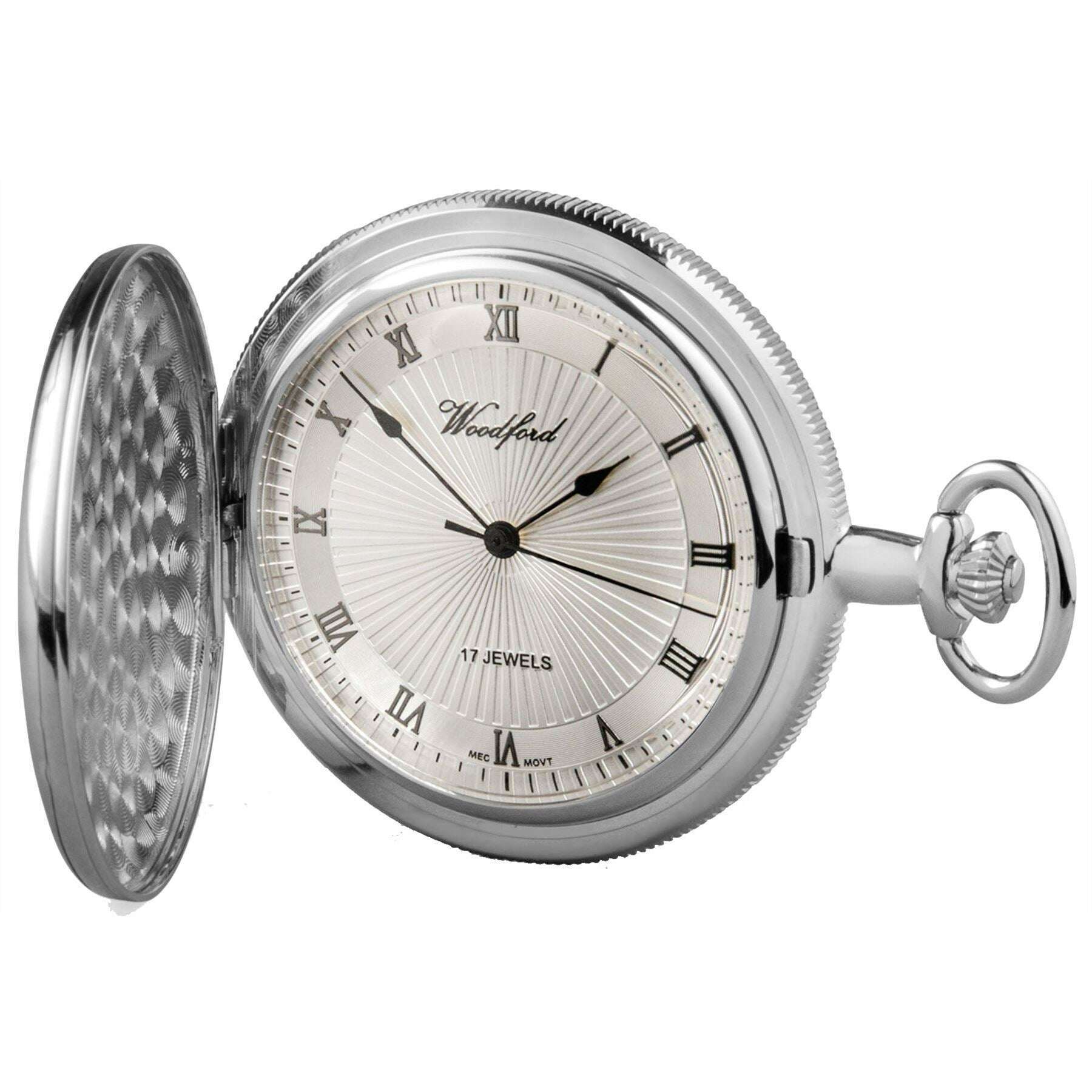 Woodford Albert and Sunburst Dial Pocket Watch - Chrome Silver