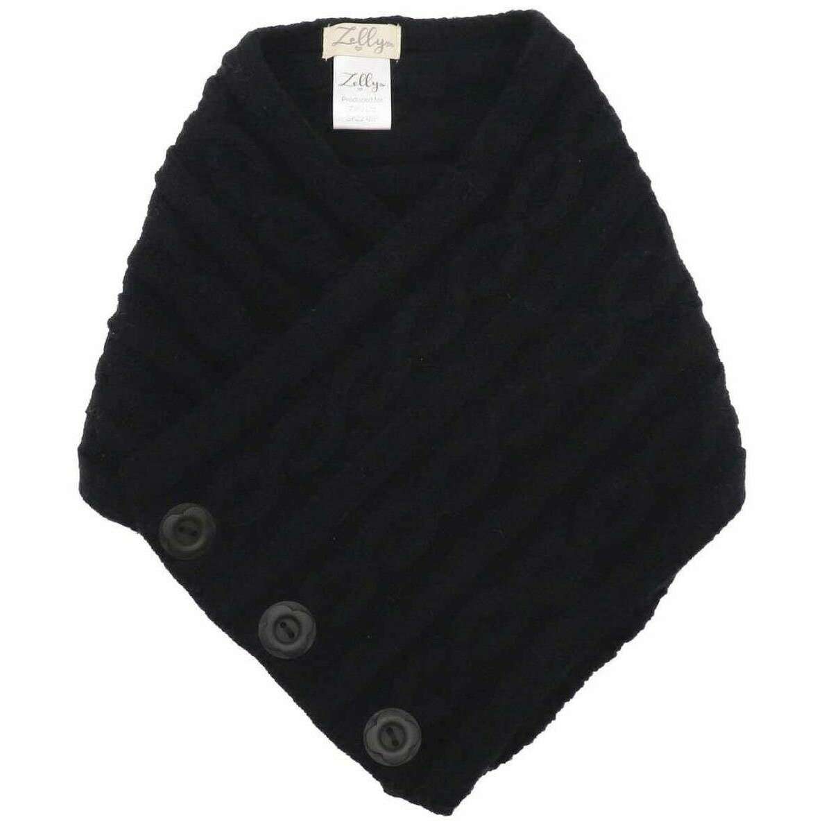 This well made women's button tippet from Zelly comes in a black colour and is manufactured from 36% chinlon, 35% acrylic and 29% viscose. It measures 78cm(height) x 80cm(width). It is recommended to machine wash at 30 degrees to keep this scarf in good condition. All the scarves come complete in zelly packaging. The Zelly Button Tippet - Black is perfect if you don t like the traditional scarf design but are looking for something to keep your neck warm through the colder months. Simplistic and practical, this neck piece ensures warmth and comfort that a scarf offers, without the excess fabric, making it a popular wear as it looks great and feels fabulous. Add this to your attire and you will be the belle in a blizzard.
