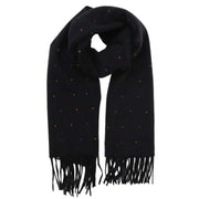 Perfect for women is this Zelly black dots winter weight scarf, it is also made from 100% viscose. It measures 190cm(height) x 70cm(width). It is recommended to machine wash at 30 degrees to keep this scarf in good condition. All the scarves come complete in zelly packaging. The Zelly Dots Winter Weight Scarf - Black allows you to indulge in everything warm and colourful, bringing vibrant flair to your winter wardrobe. Its beautiful, tasselled ends offer a timeless touch and the super warm material will keep you wrapped up all cosy and warm like a much-needed hug. Pair this with your favourite beanie hat and gloves and you are all set to brave the cold in absolute style.