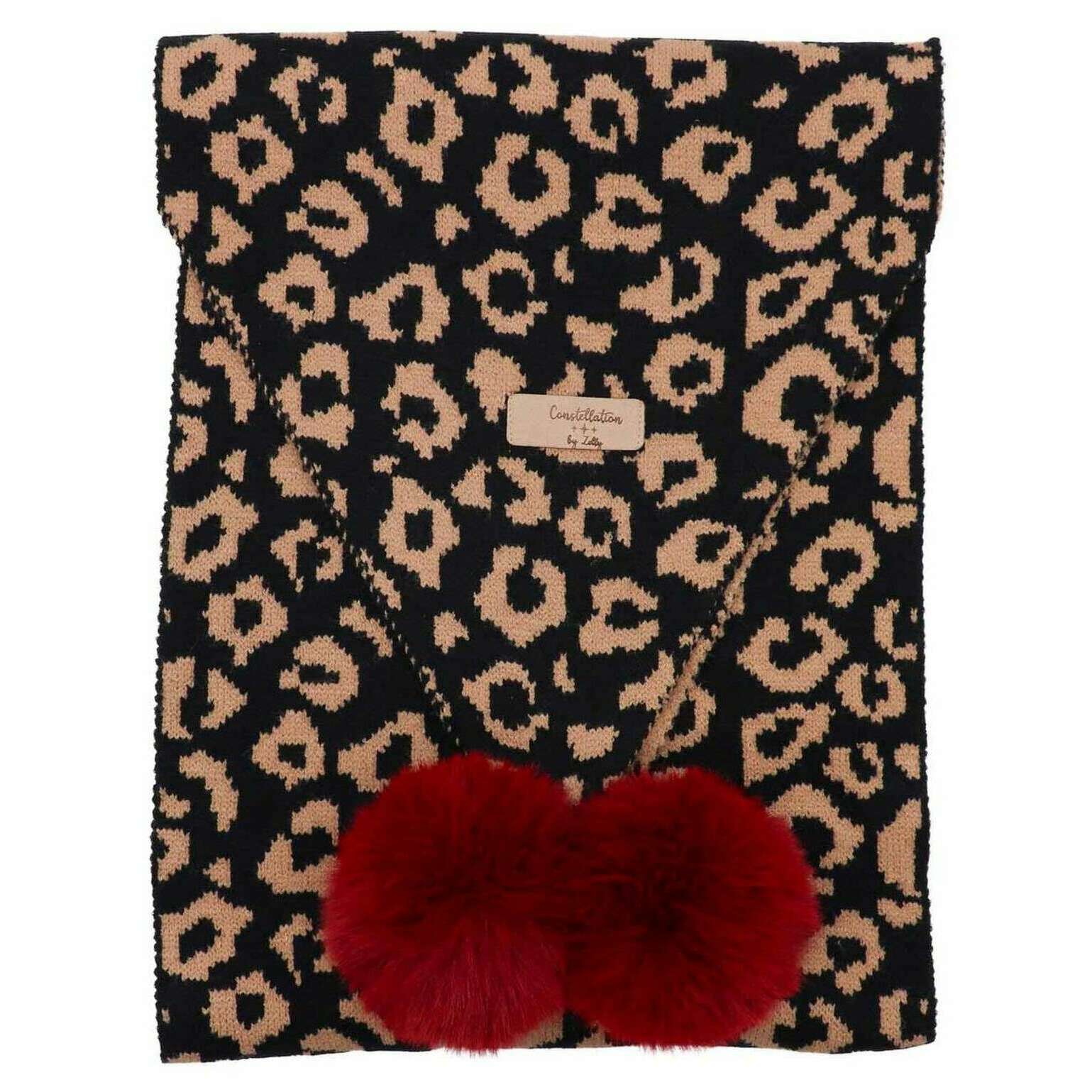 Zelly Leopard Pom Pom Scarf - Black/Beige